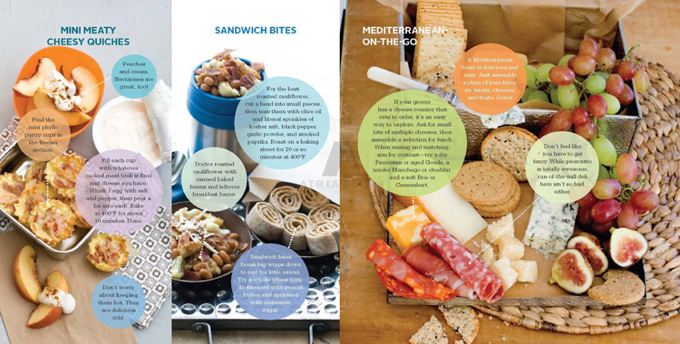 This is not a cookbook. Well, there are some recipes for dinner items you can make ahead so that you can use the leftovers to make lunch, but really it’s a visual exploration of fun stuff to put in your kid’s (or your–many of these items are perfect for adult palates) lunch box. Why go for the same old thing when you can make it fun and different?