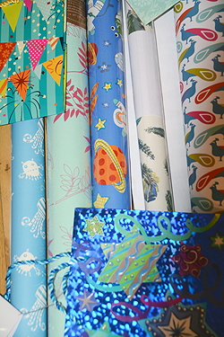 And…wrapping paper. Well, paper products in general. I haunt the post-holiday sales, and lately have become addicted to One King’s Lane’s wrap sales where they sell artist-created wrap and gorgeous ribbon.