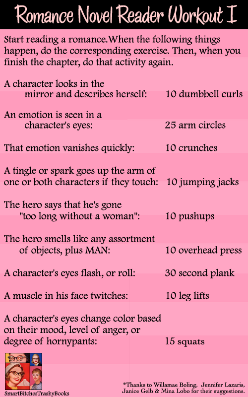You should consider what you want to do once you lose the flab and gain the muscle. Maybe you’d like to be able to play sports with your friends. Maybe you’d like to gain some of that mental clarity (remember to put away your phone when you exercise—workouts are “you” time). Maybe you’d simply like to be able to walk around without your knees complaining so much. Remember that romance heroes don’t work out to attract women. They stay in shape for themselves, and that’s what you need to do, too.